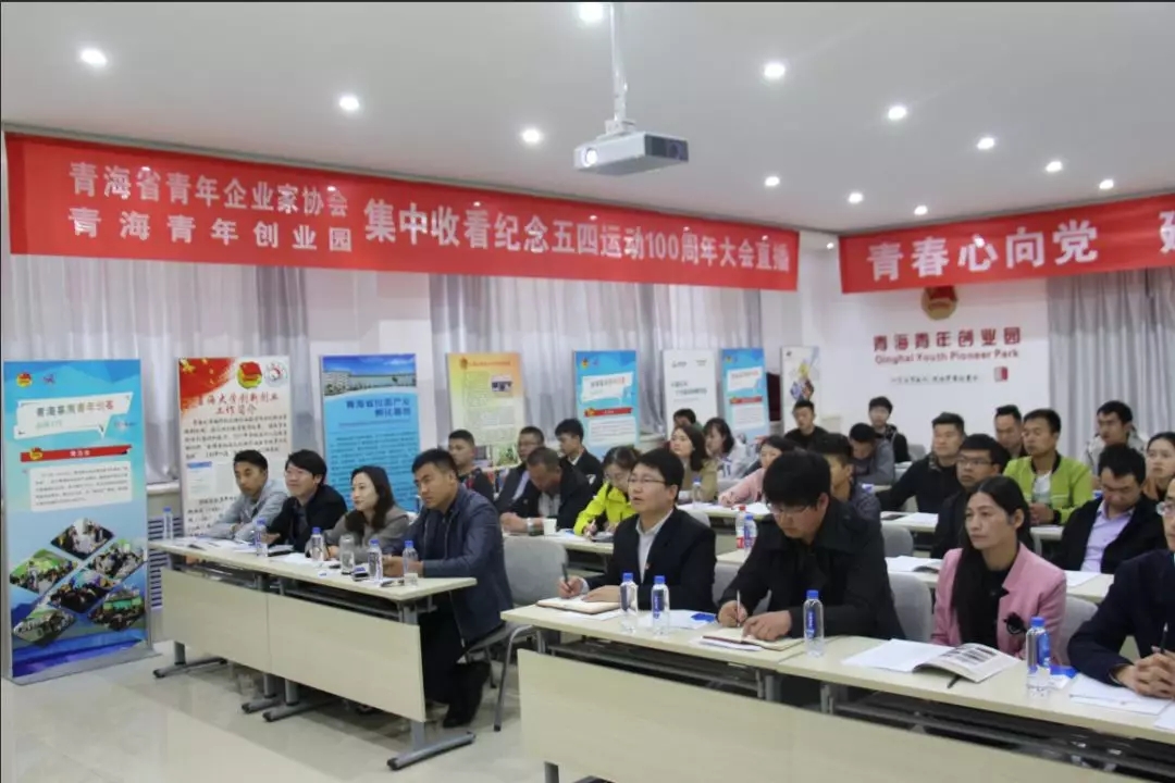 4月30日上午10時30分,紀念五四運動100周年大會在人民大會堂舉行。青海省青年企業(yè)家協(xié)會、青海青年創(chuàng)業(yè)園組織團員青年代表50余人集中收看大會實況直播,學習習近平總書